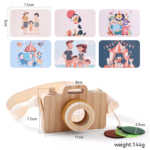Ten drewniany aparat fotograficzny to zabawka edukacyjna zaprojektowana w stylu Montessori, wspierająca rozwój kreatywności oraz wyobraźni dziecka. Umożliwia zabawę w odgrywanie ról, zachęcając do naśladowania dorosłych i rozwijania umiejętności społecznych.