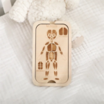 Zabawka została wykonana z drewna, co zapewnia jej trwałość i komfort użytkowania. To propozycja, która rośnie razem z dzieckiem – od prostego dopasowywania elementów po bardziej świadome poznawanie budowy ludzkiego ciała.