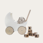 Uroczy, minimalistyczny design — pastelowe barwy i delikatny kształt sprawiają, że wózeczek pasuje do każdego dziecięcego pokoiku