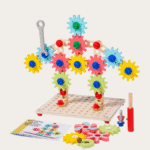 Małe rączki, wielka wyobraźnia i świat kolorowych zębatek czeka na odkrycie! Ten zestaw pozwala dzieciom budować własne mechaniczne konstrukcje – skręcać śrubki, dopasowywać nakrętki i łączyć klocki, tworząc ruchome układy zębatek.
