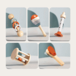 Pięć drewnianych instrumentów (różne kształty) rozwija słuch, rytm, koordynację i manualną precyzję. Gładkie, bezpieczne elementy, nietoksyczne farby. Od ok. 6 m+ .