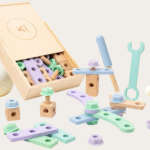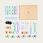 Pozwól dziecku wkroczyć w świat konstrukcji i kreacji! Nasz drewniany zestaw montażowy to prawdziwa skrzynka majsterkowicza dla małych odkrywców. Dzięki śrubkom, nakrętkom, elementom do dokręcania i demontowania dziecko może samodzielnie tworzyć różne konstrukcje — samochodziki, figurki, kreatywne projekty. To jak mini-warsztat w zasięgu jego rąk.