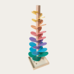 To wesołe, drewniane drzewko to prawdziwa kraina odkryć dla małych rączek! Dzięki tęczowym płatkom i melodyjnym dźwiękom dziecko bawi się, uczy i rozwija zdolności manualne oraz poznawcze – wszystko w naturalny, przyjemny sposób.
